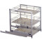 Cadre en aluminium anodisé et coulisses sortie totale. Panier fil blanc. Profondeur 456 mm, Hauteur 485 mm. 3 niveaux. Nota bene : Avec le rail à billes, la largeur augmente de 25 mm.